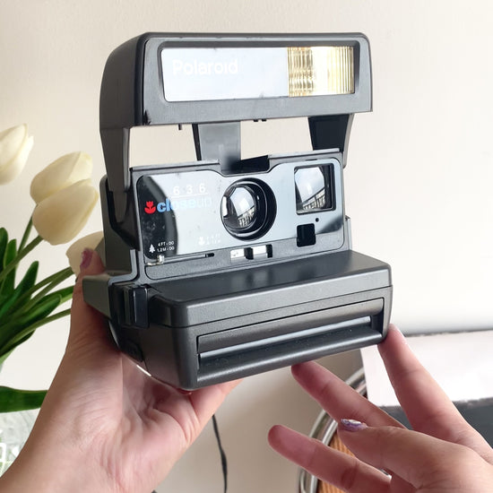 A pop-culture icon! One of the most iconic Polaroid models ever made, featuring the classic boxy shapes of the 80's. It produces the classic square polaroid photo we all know and love and comes straight out from the camera after you take your photo developing instantly.